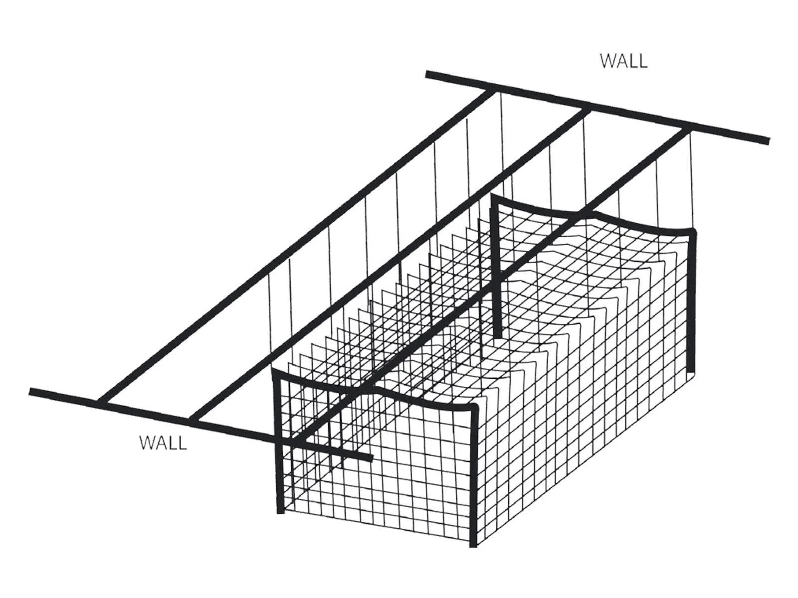 Move baseball and softball practice inside on rainy days with a batting cage made specifically for indoor use. The indoor net suspension kits include 100’L cables, clamps, eye bolts, turnbuckles, and snap links for wall-to-wall or ceiling suspension. Net is sold separately.