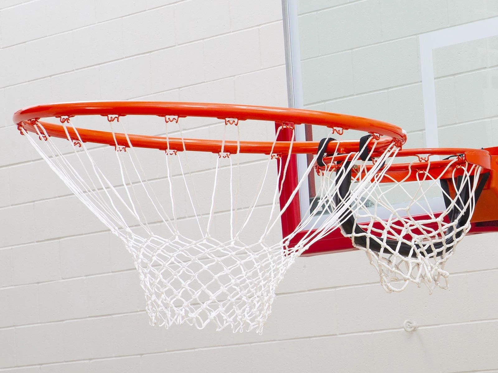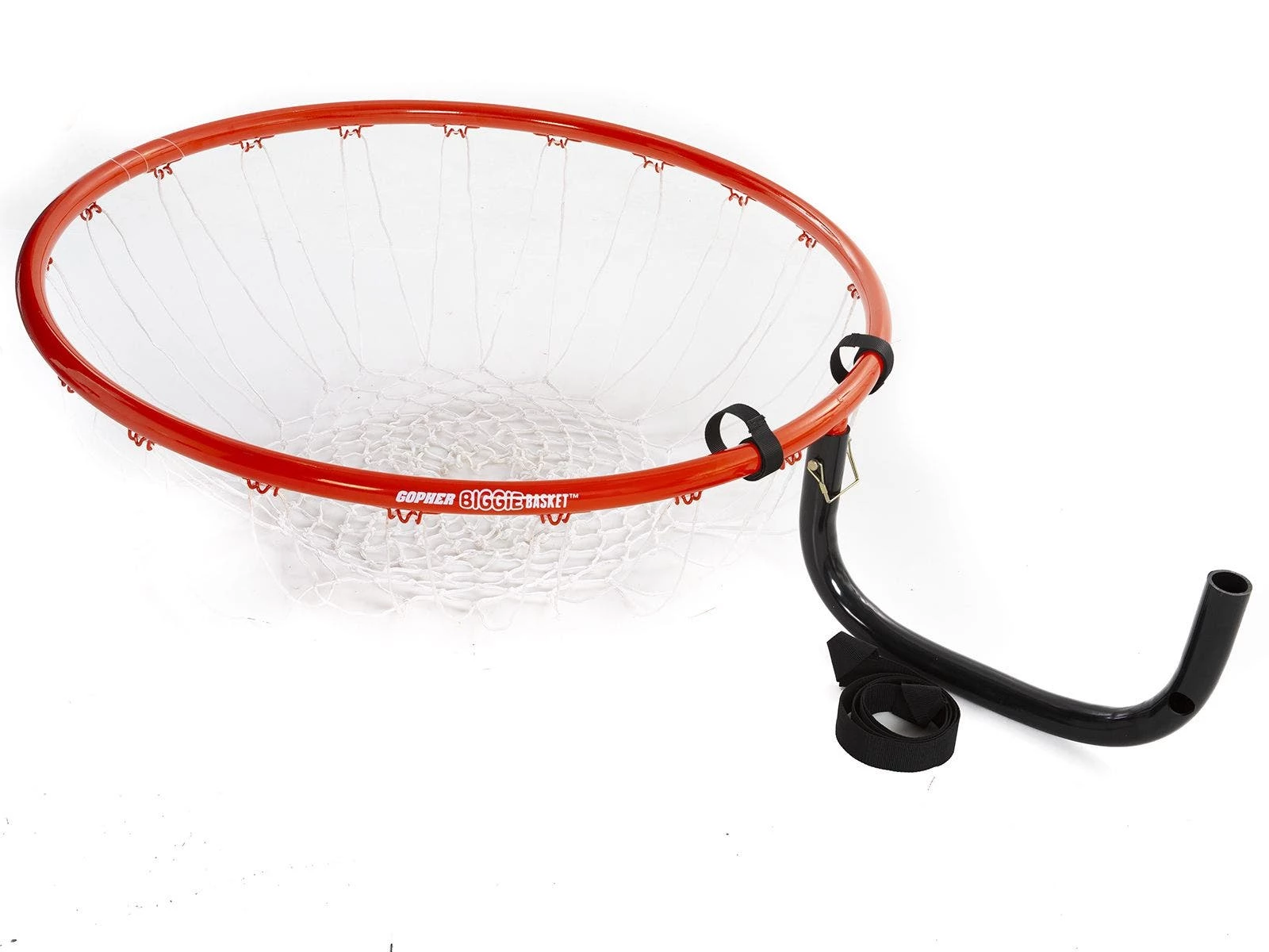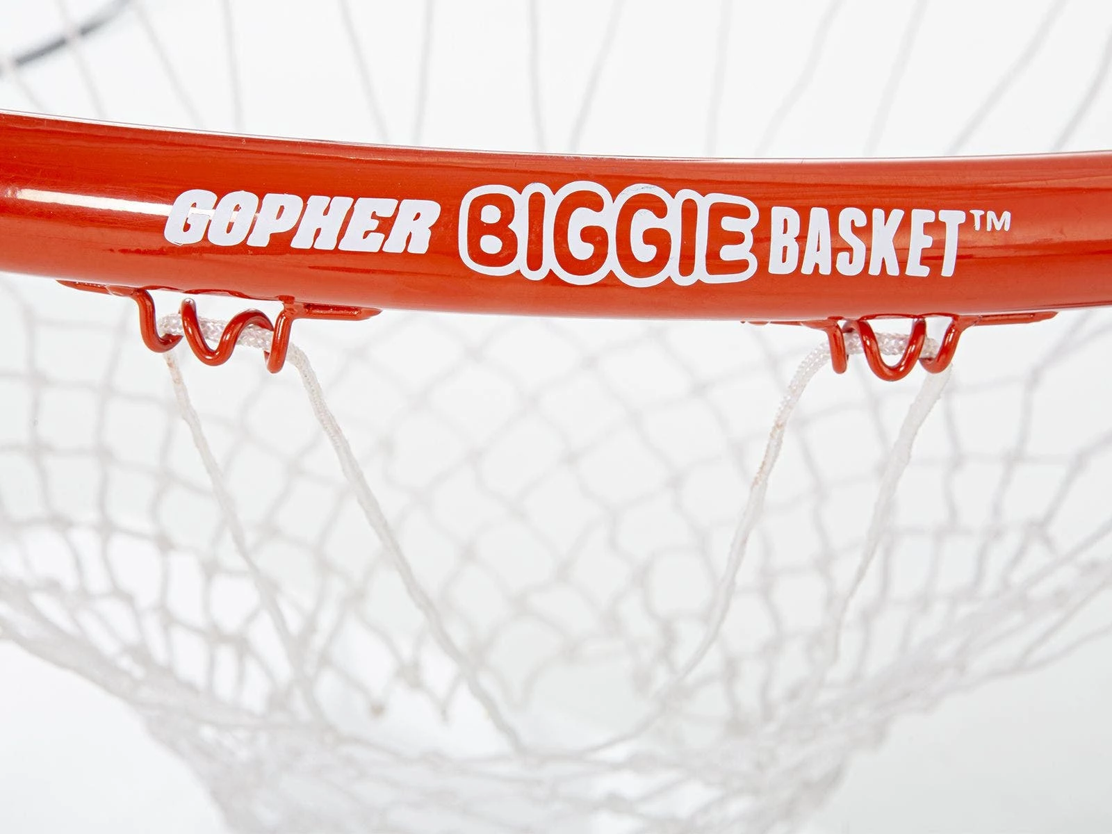 Use it as a hoop to introduce the basics to beginners or incorporate it into team games, the ideas are huge for this oversized 38″ dia basketball goal! It connects to your existing, standard goal via molded ABS tubing. It secures to the rim with minimal movement using 2 small hook-and-loop fastener straps and a larger strap that goes around the back of the existing goal. BiggieBasket goal is made of orange, powder-coated steel for long-lasting use. Pair it with our Biggie! Basketball (sold separately) for entertaining and skill-building games. Goal is 9 lb.