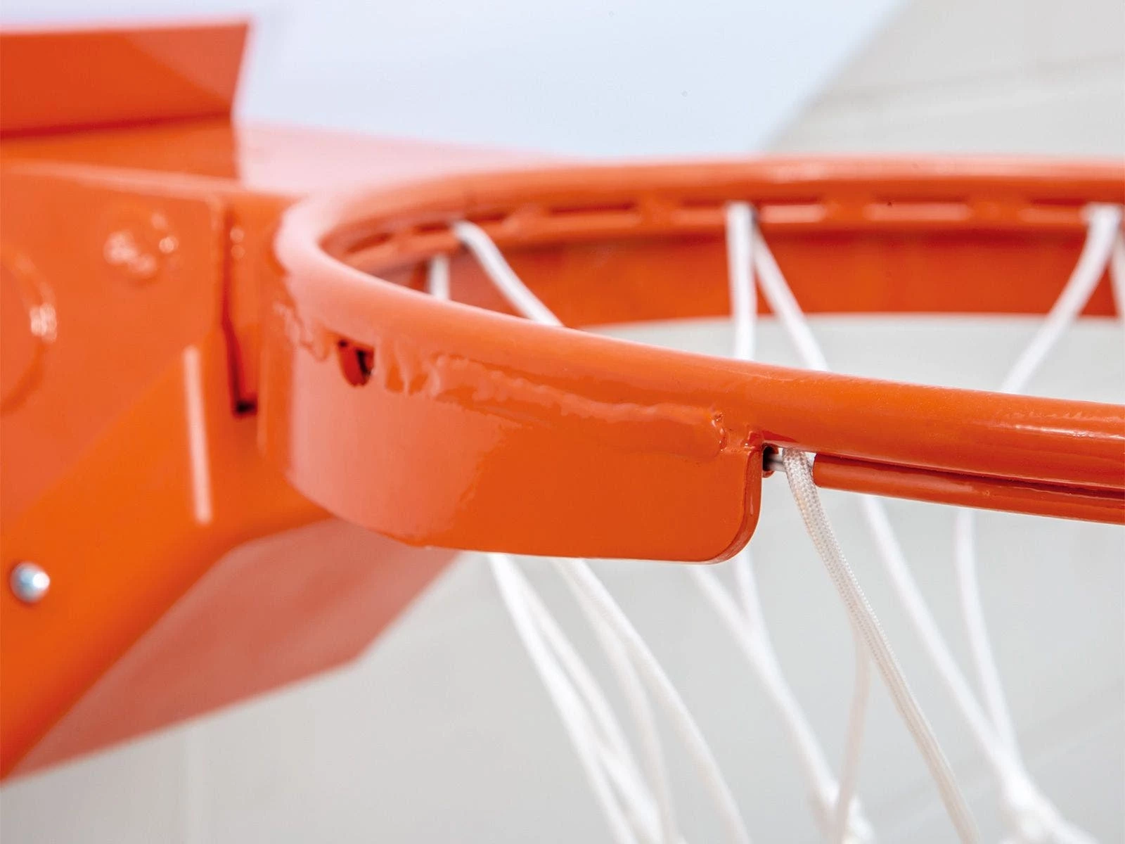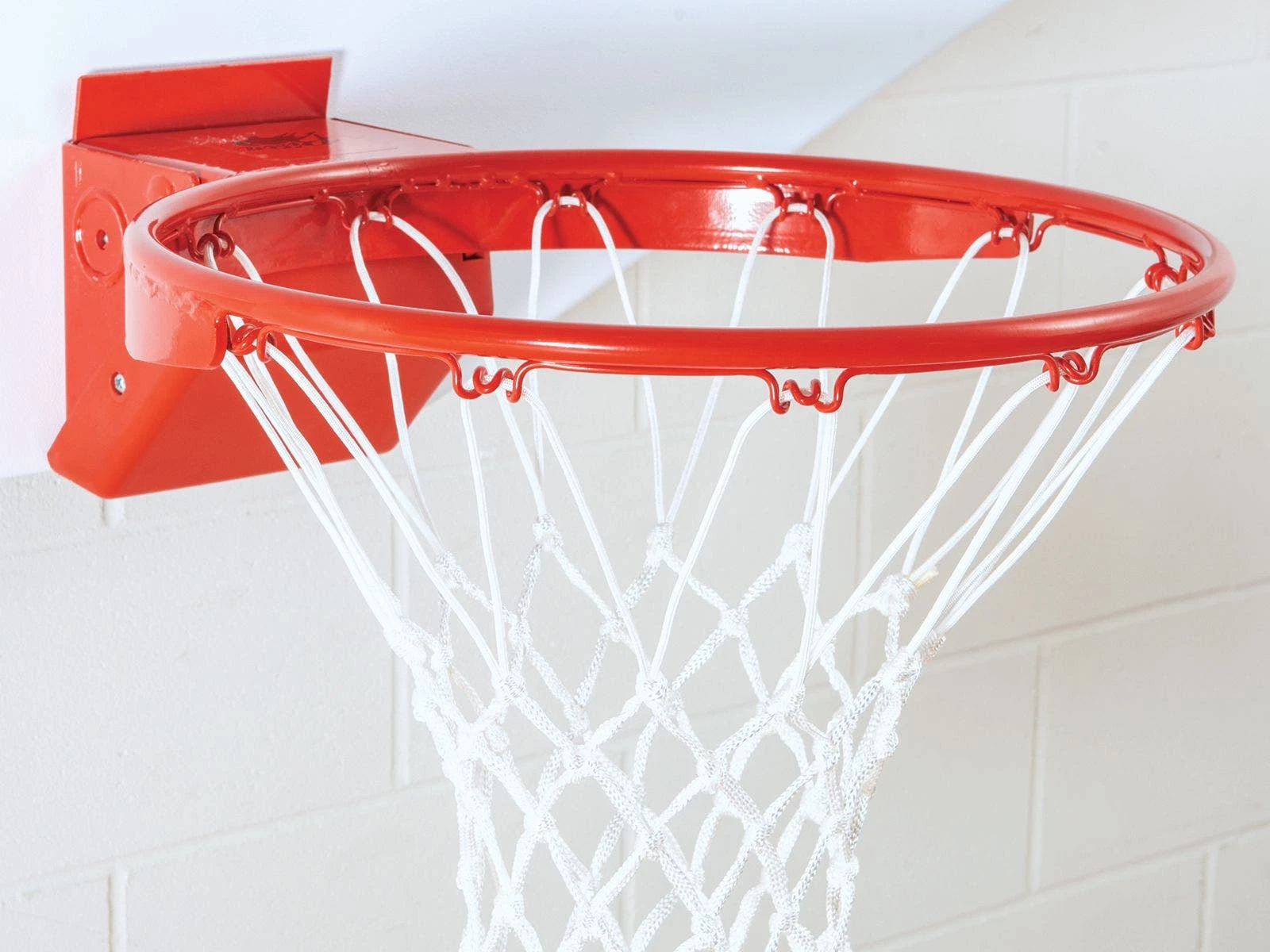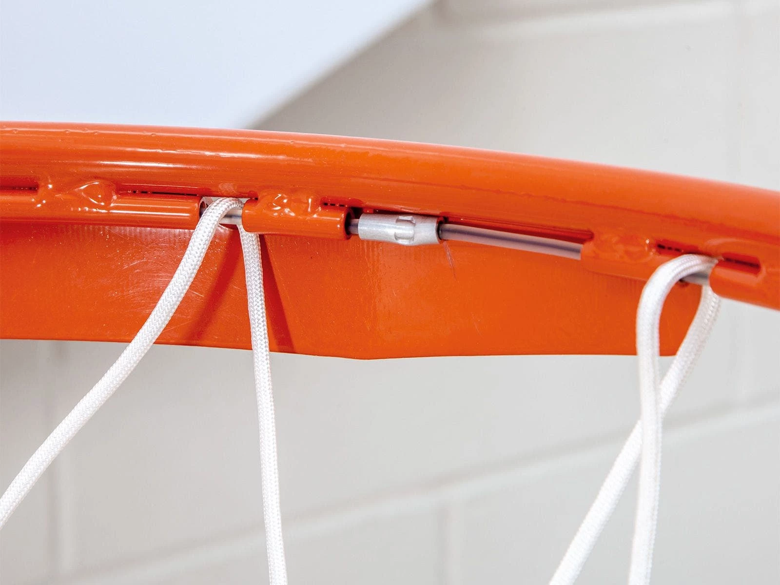 A six-point lubrication system ensures smooth performance during games. Its one-piece continuous net system prevents knotting and tangling. The high-tensile strength 5/8″ steel ring provides 50% greater bend resistance than normal rim material. Bison’s low-maintenance AcuFlex adjustable tension mechanism features an exclusive cover plate that is padded for extra safety.