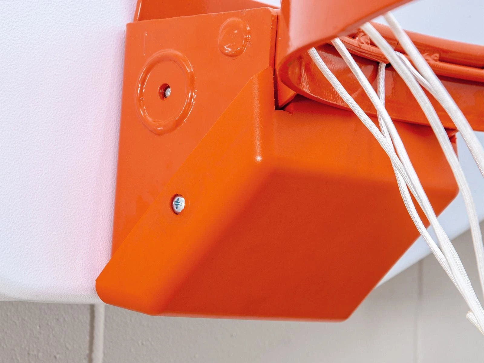 Backplate fits 5″W x 4″H and 5″W x 5″H hole patterns on both 42″H and 48″H rectangular and fan-shaped glass backboards. Goal meets NCAA and NFHS standards and is engineered for indoor use only.