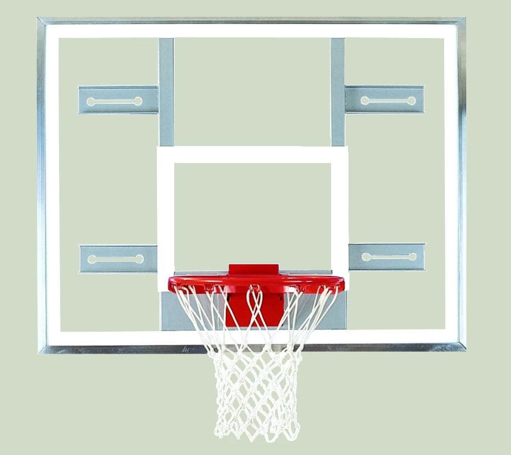 Bison’s side court backboard provides competition-quality performance and converts fan-shaped boards to the popular rectangular glass shape. Simply remove the previous fan backboard and mount this rectangular backboard to the existing structure without drilling or realignment. Welded steel support extends the life of the backboard. Off-glass goal mounting provides security and safety from board breakage.