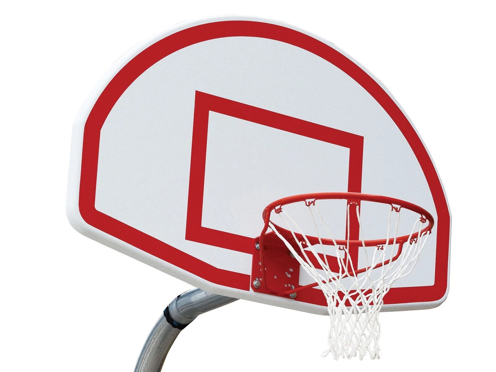 - Includes post, backboard, fixed single-rim goal, and net