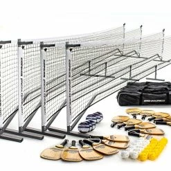 4-Court PaddlePro Elite Packs. Include 4 PaddlePro Elite Nets, 16 paddles, 24 PaddlePro Balls (12 Ea White, Yellow), and 6 rolls floor tape (1″W).