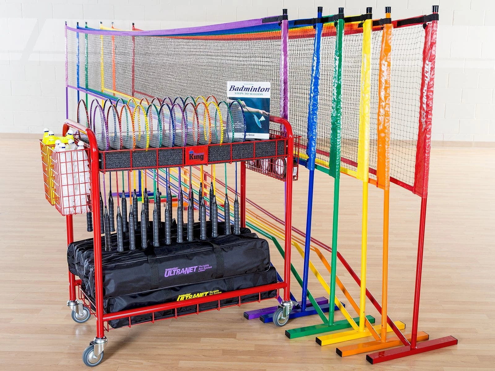 Rainbow Premium Pack. Includes everything in the Basic Pack plus a RacquetKing Badminton Storage Cart.