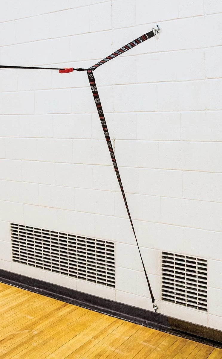 Wall-mounted badminton net system spans the entire length of the gym to quickly create 3 courts. It attaches at each end using tether mounts permanently installed in the wall for immediate access. No standards, floors sleeves, or multiple systems required! Connect tether strap to the desired numbered height on the wall. String out nets and connect to the opposite wall at the same height. Use custom buckles to tighten the nets, and it’s complete!