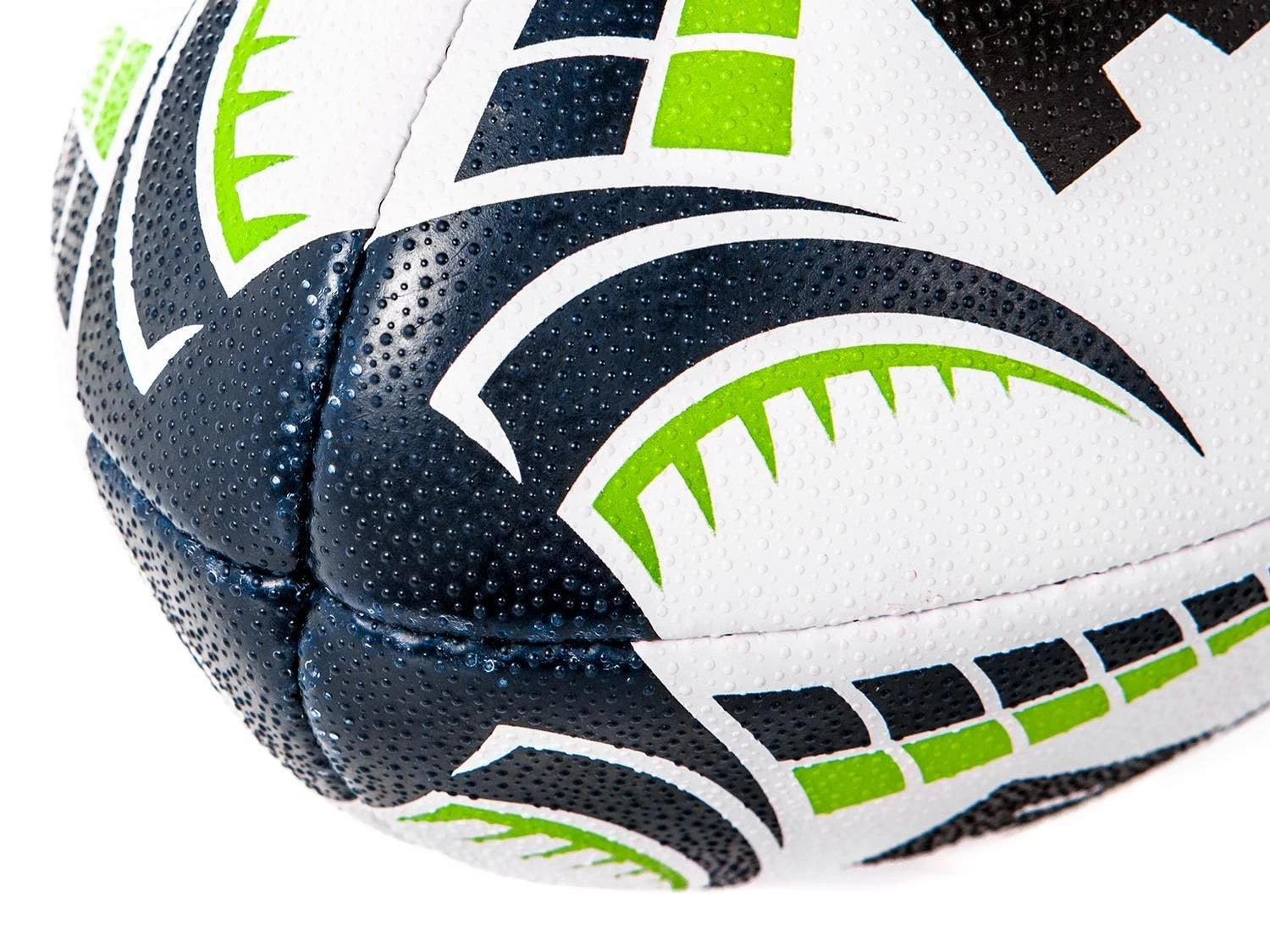 This rugby ball has a unique 3D large grip pattern that makes the ball extremely tough and long lasting. Cover is made of a combination of natural and synthetic rubber that’s hand-stitched to increase the durability of the ball. Available in Size 5.