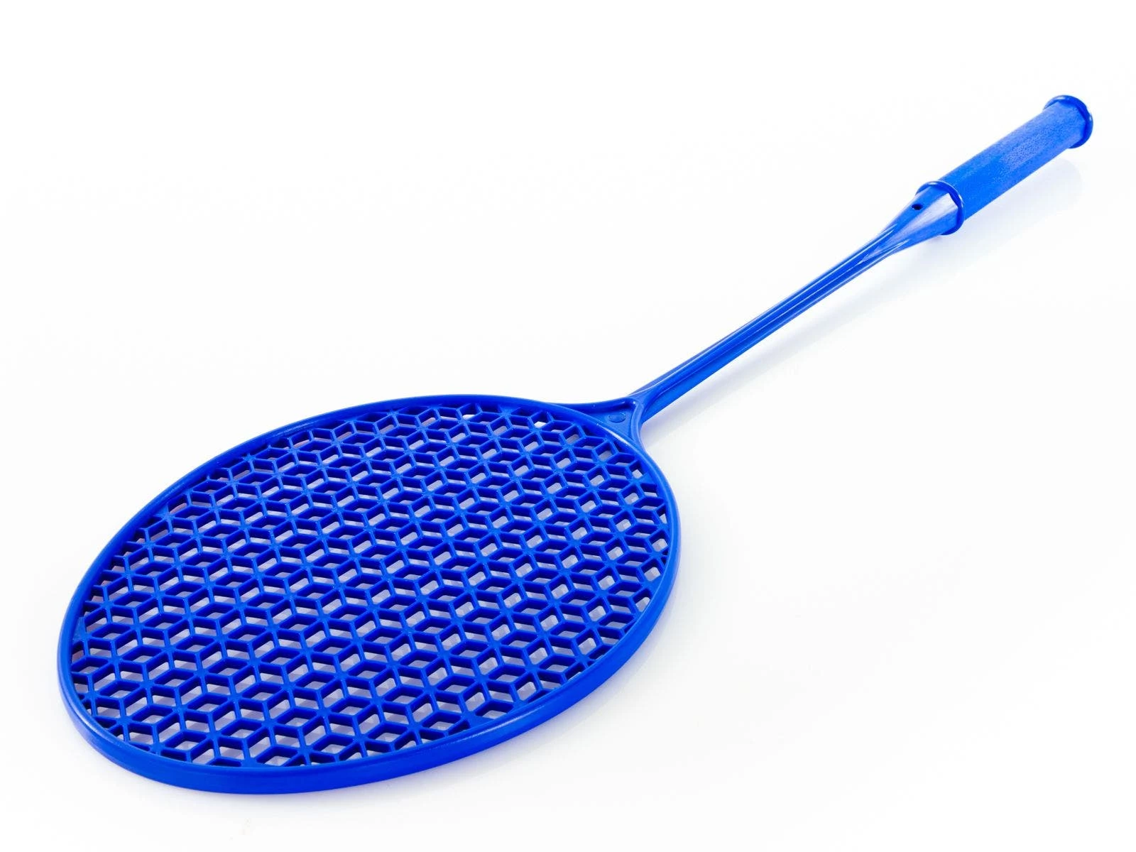 Durable nylon construction stands up to repeated use. It’s especially useful for younger players just being introduced to racquet sports. The one-piece construction means the head and shaft are joined together to prevent separation or deformation during consistent use. Molded-in string pattern allows players to hit shots where they want. The 25-3/4″L frame weighs just under 5 oz, while the handle is just under 1/2″ dia, making it easy to hold and swing.