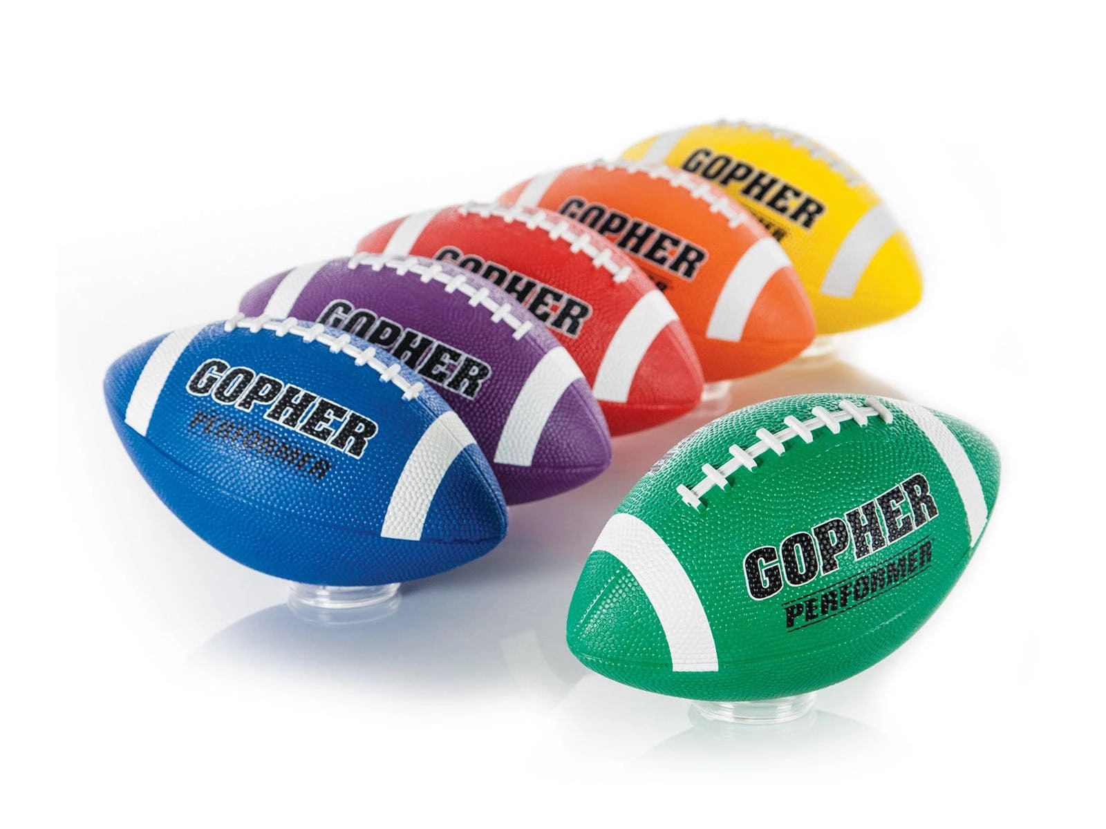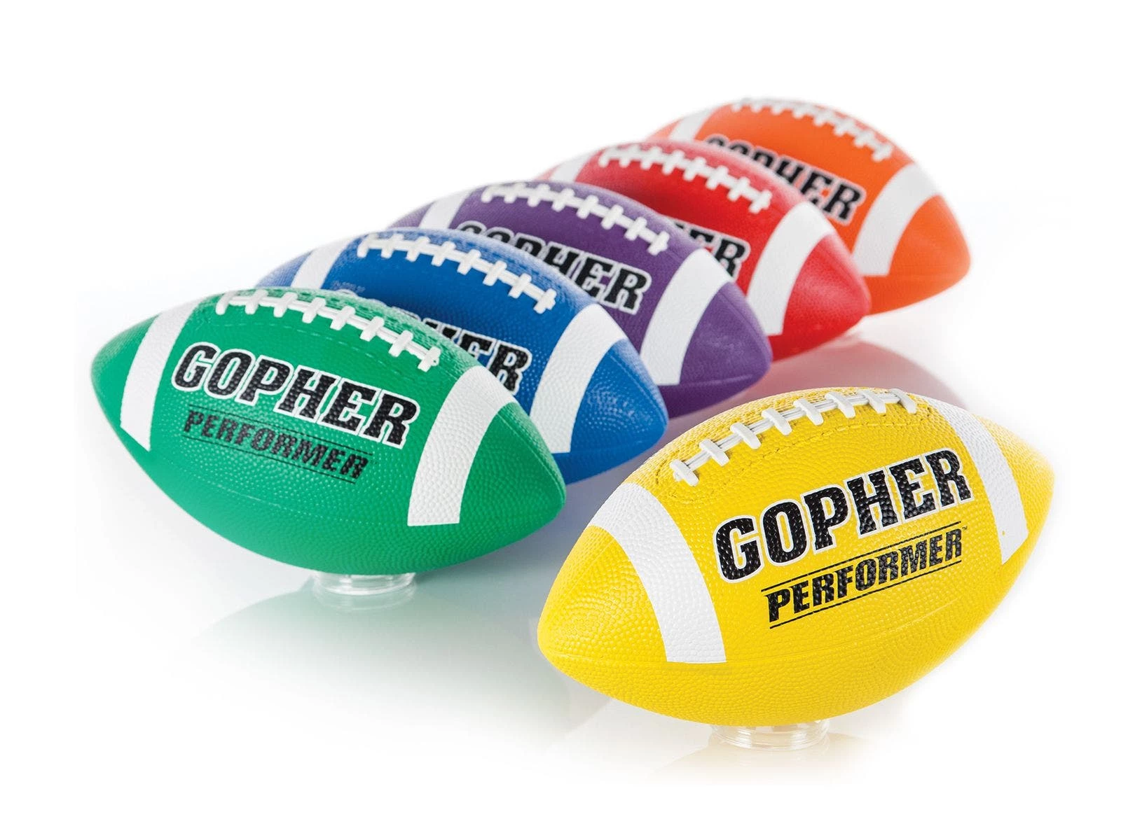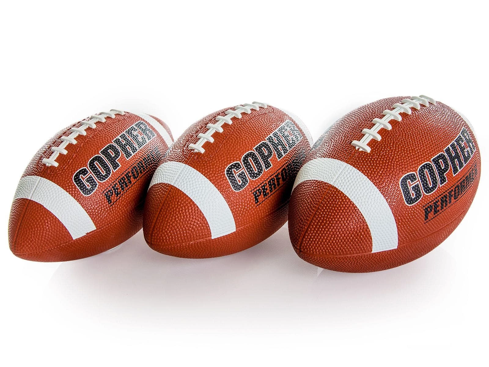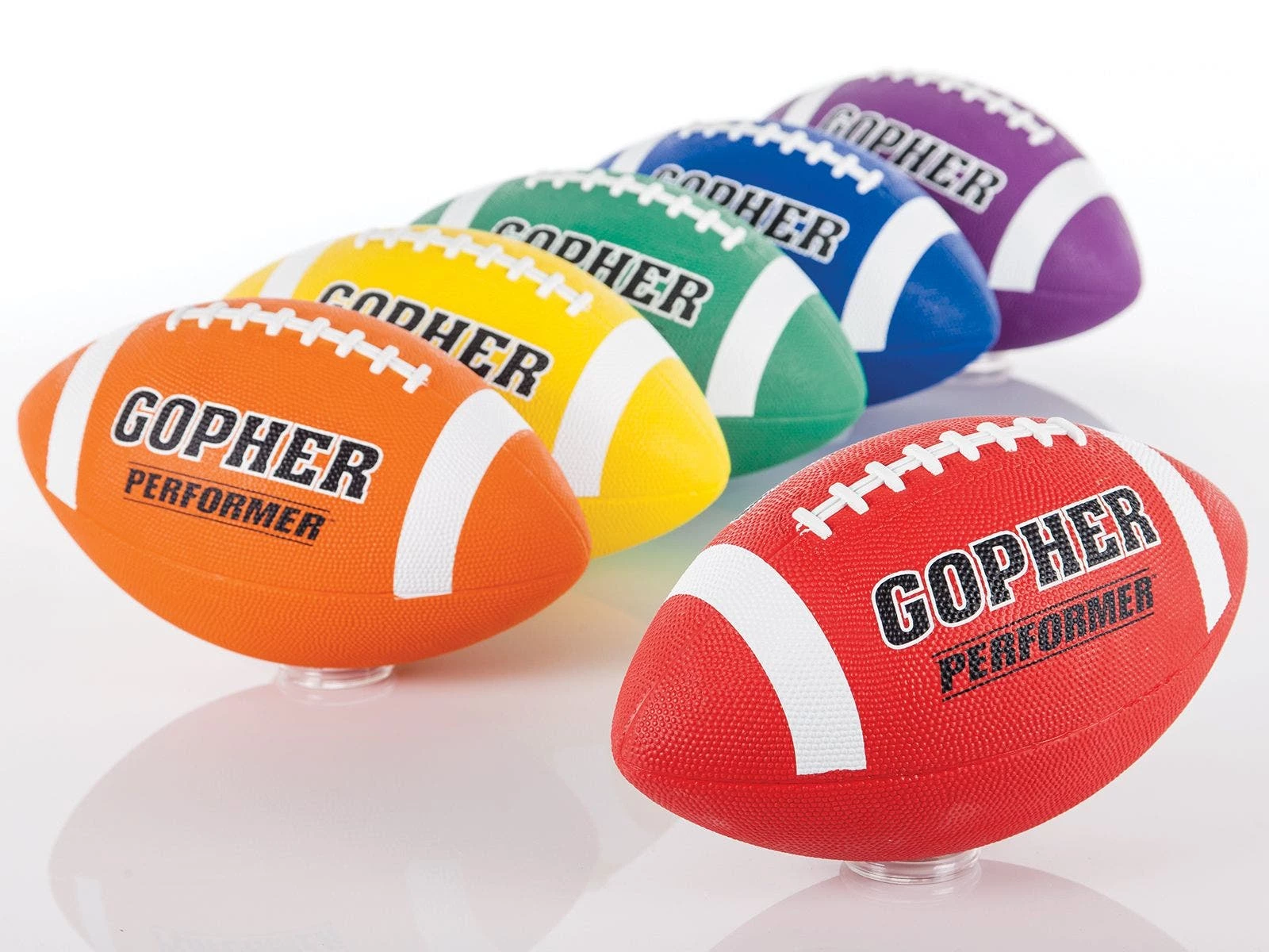 Deep pebbling and raised laces on this football give students excellent grip for more control during passing. This is our most preferred Gopher rubber football, popular in camps and PE classes.