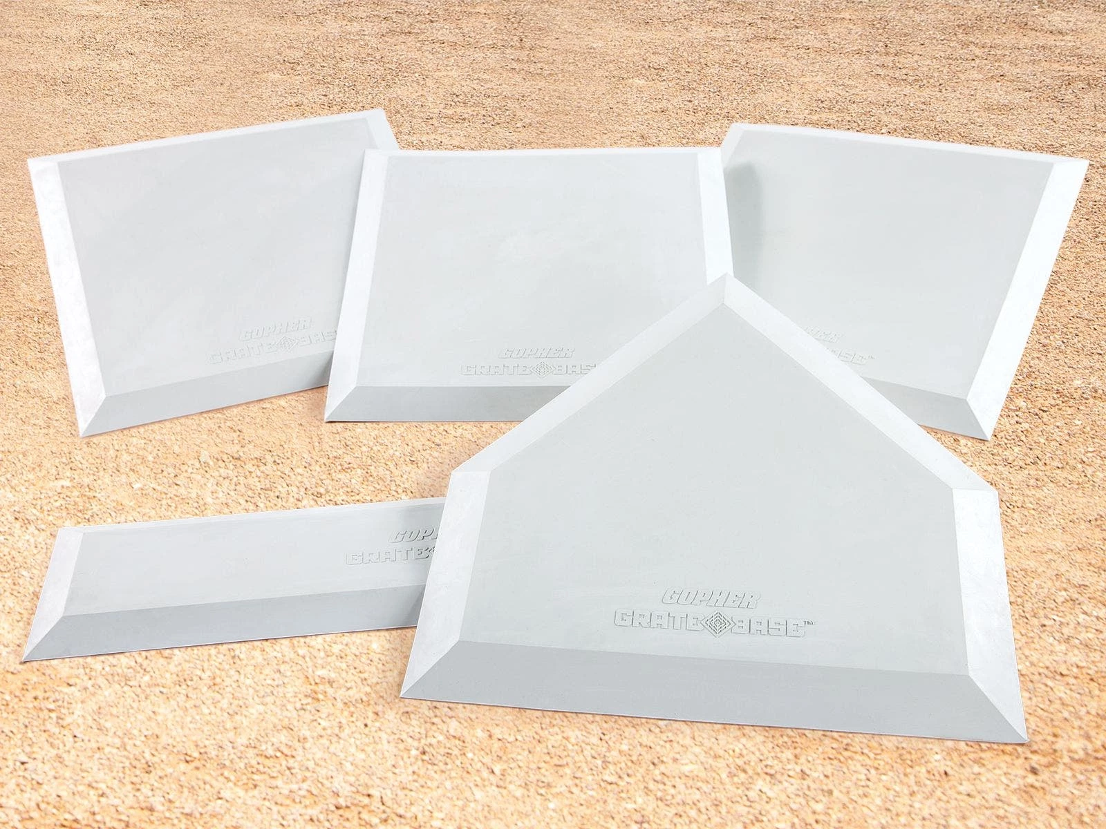 Official size bases measure 15″, home plate is 17″, and the pitcher’s mound is 24″L. Each set includes 3 bases, 1 home plate, and 1 pitcher’s mound.