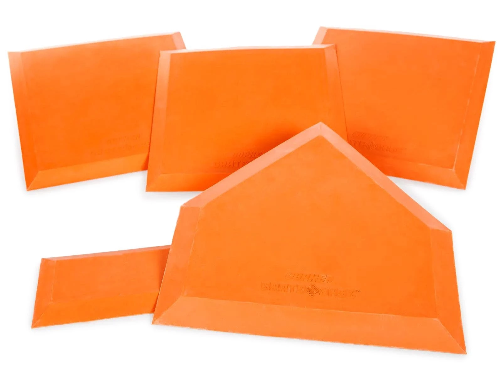 A specially-design grate bottom on these bases provides better grip on any surface, indoors or out. Extra thickness (almost an inch) enhances the stability and visibility of the bases, making them safer for use by base runners of all ages. Beveled edges decrease the chances of falls or twisted ankles and make for a smoother transition from the floor or ground to the base.