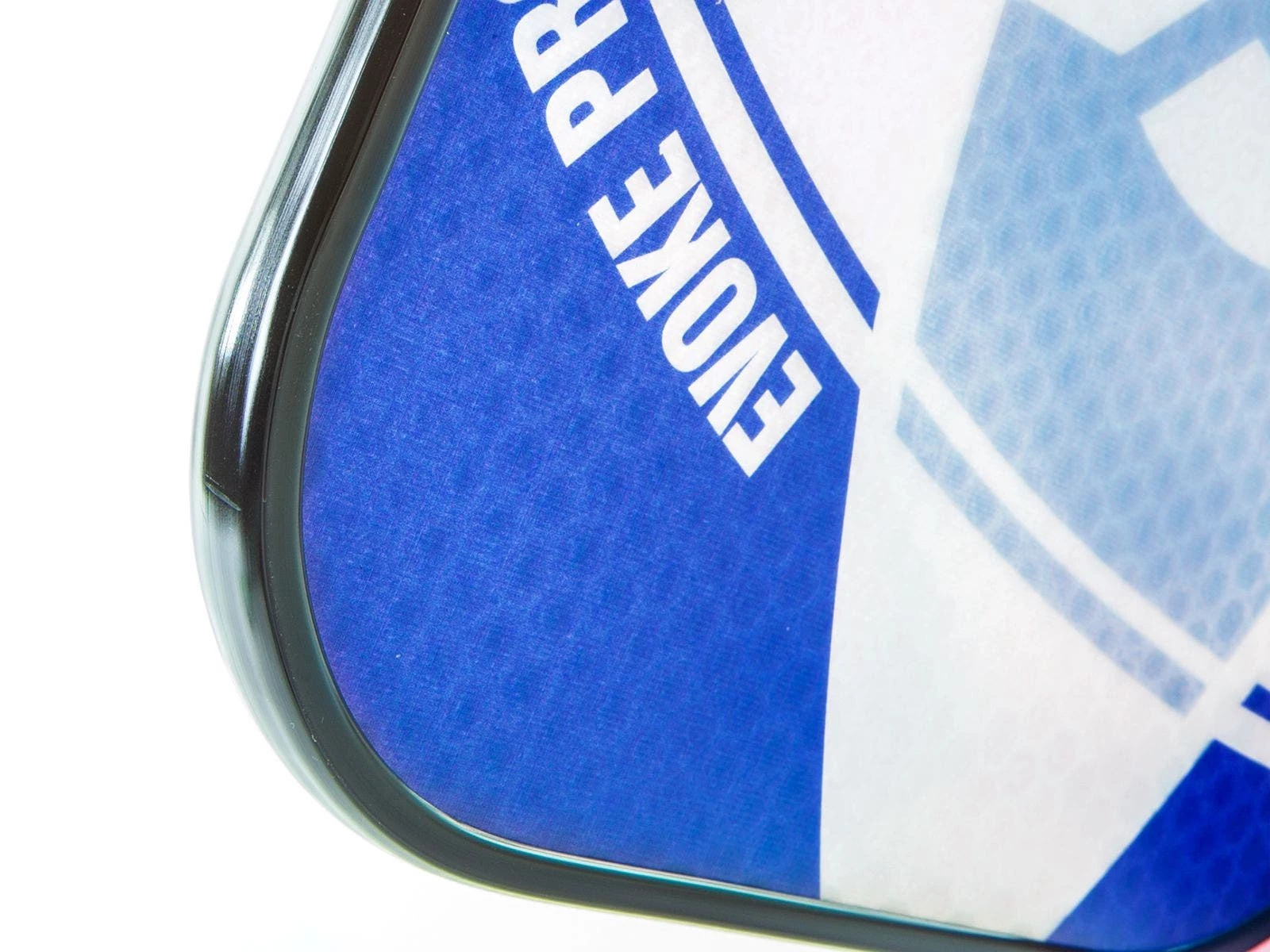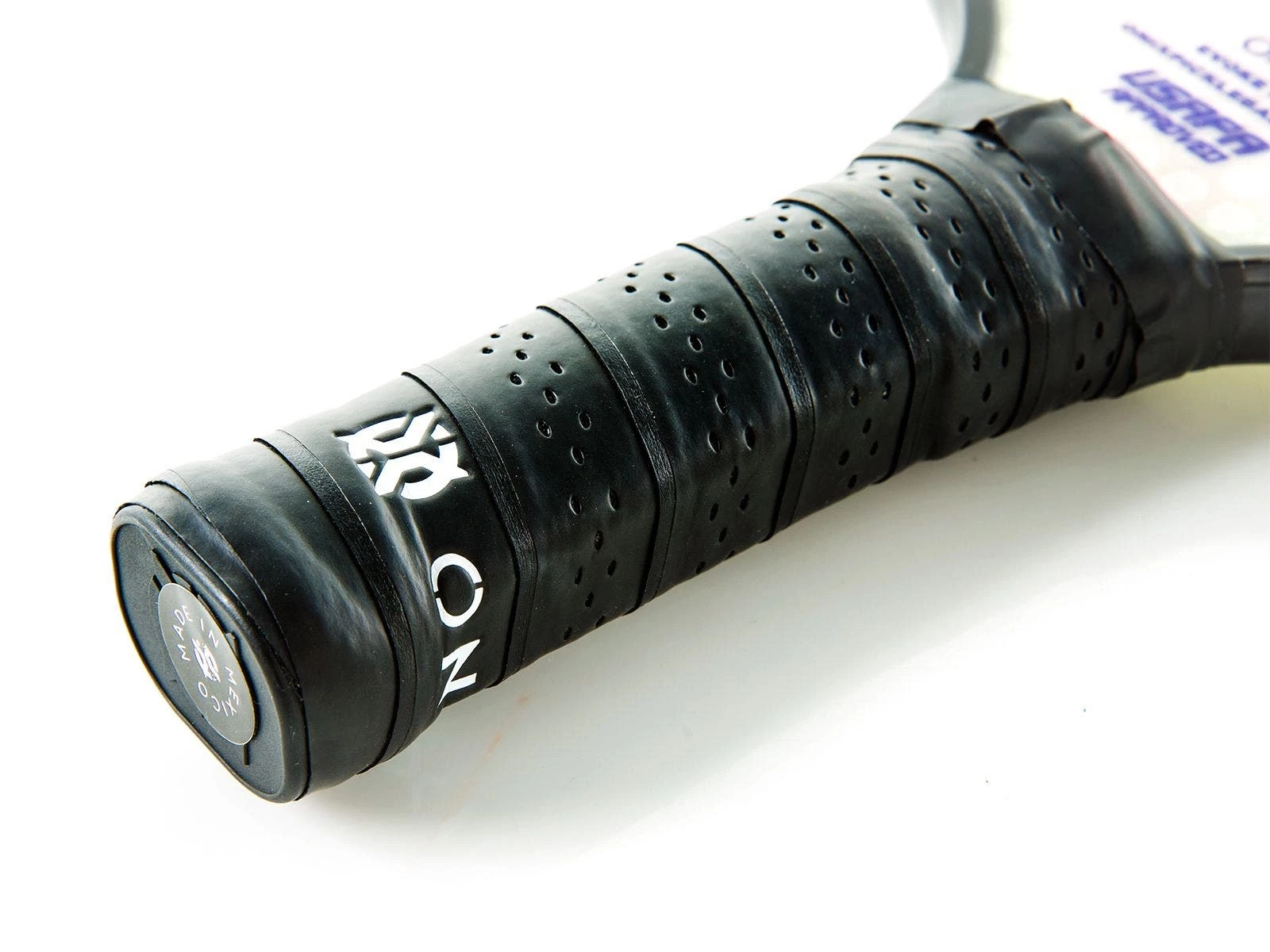 The 5″L, tennis-style handle is comfortable and allows for a greater power. Paddle is 15½”L x 8¼”W and weighs 8.3 to 8.6 oz. USAPA Tournament Approved.