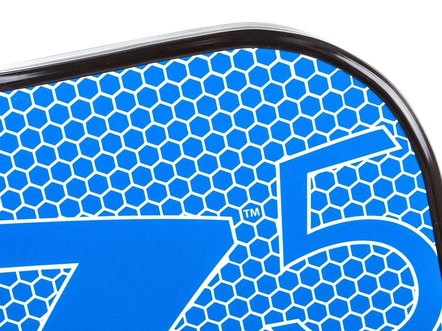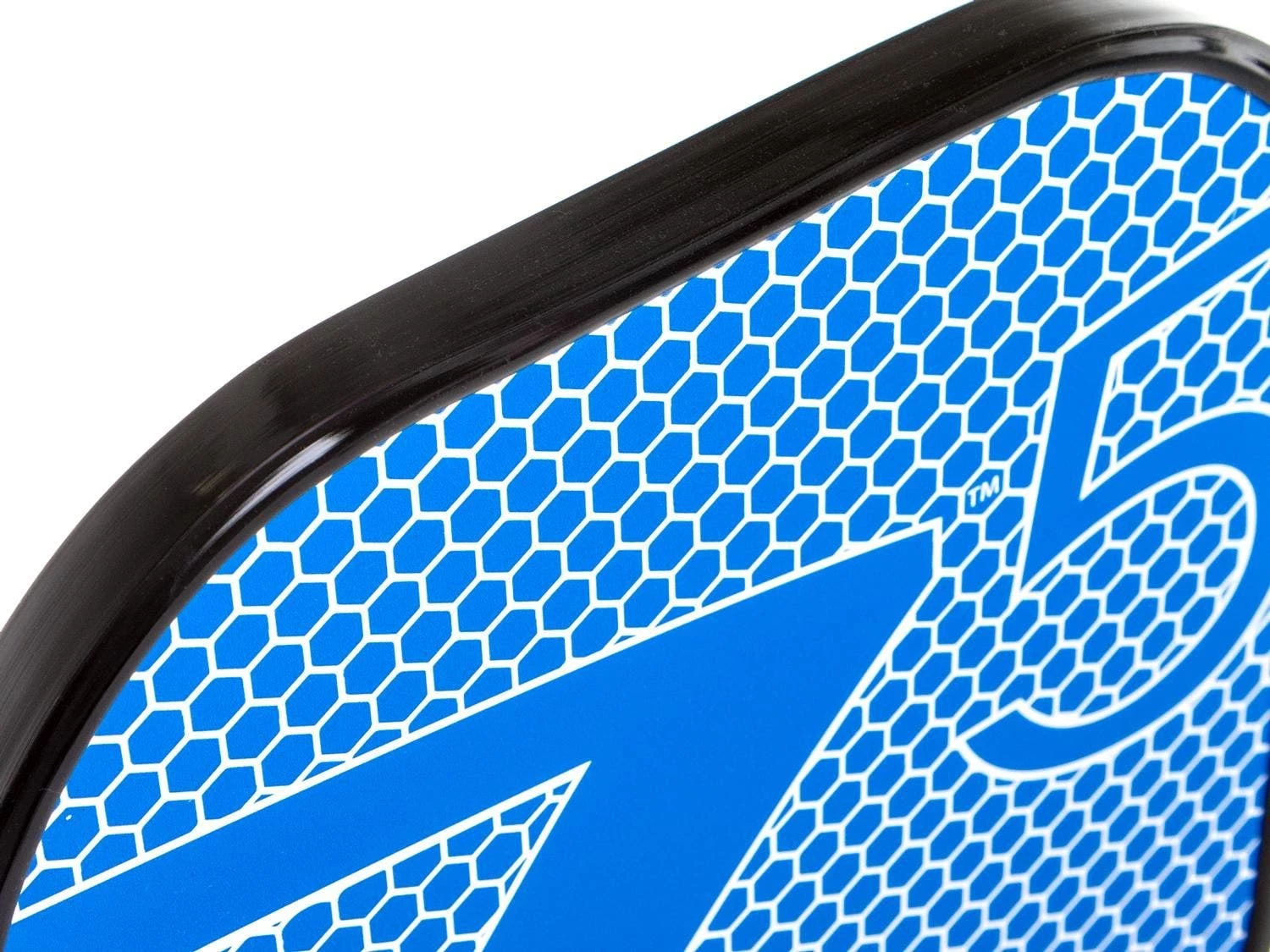 This paddle is great for players who want to muster extra power when they hit the ball! It has a Nomex honeycomb core that provides a durable foundation. Its wide body and fiberglass composite face add to the power and durability of the paddle for long-lasting use. Players can play pickleball in comfort with a 5″L handle that is wrapped in a black perforated cushion grip. An edge guard adds durability to the sides of the paddle.