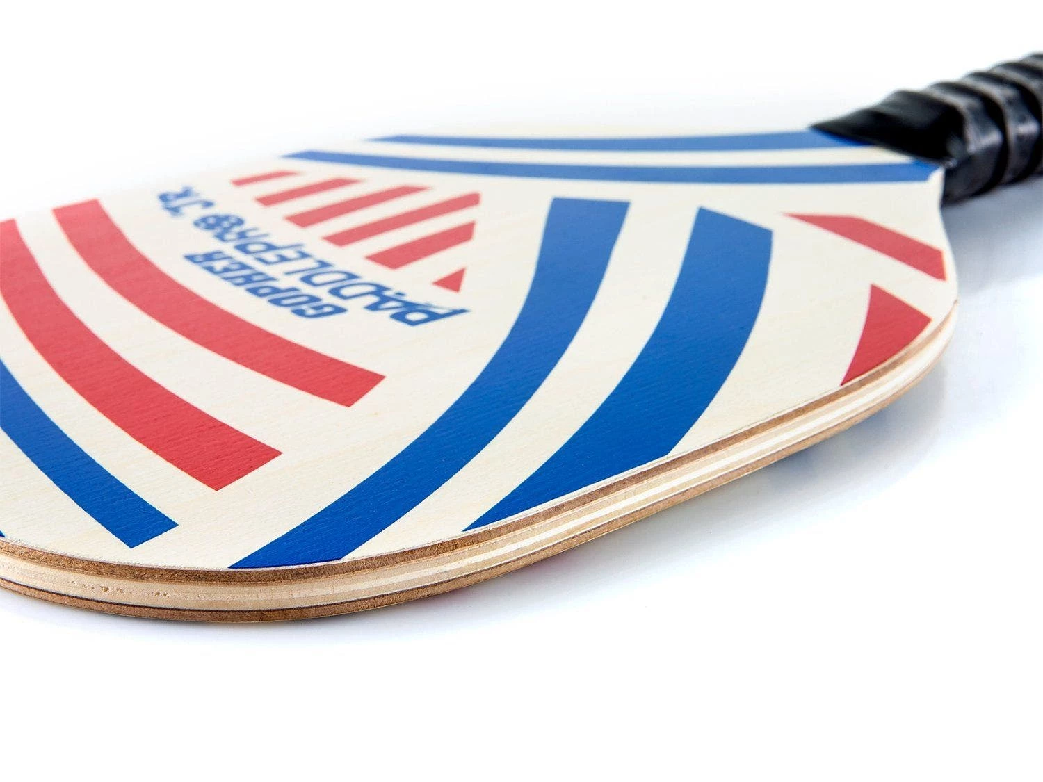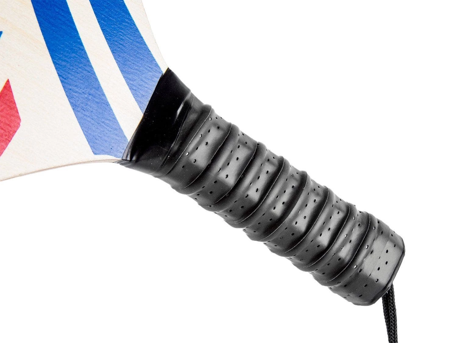 Our entry-level paddle is designed to get young students playing the game. Durable 7-ply maple construction holds up to routine use and lasts for years. A 5″ handle features a soft polyurethane grip for increased control and a wrist strap prevents flyaway paddles.