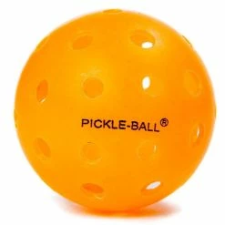 These balls are made of thick-walled seamless plastic to increase longevity and durability, especially when used for outdoor play. Pickle-Ball’s unique hole pattern creates a very aerodynamic design for truer flight. Players will easily spot these balls in any outdoor setting, thanks to their bright colors. Official size. Available in a set of 12 in Orange.
