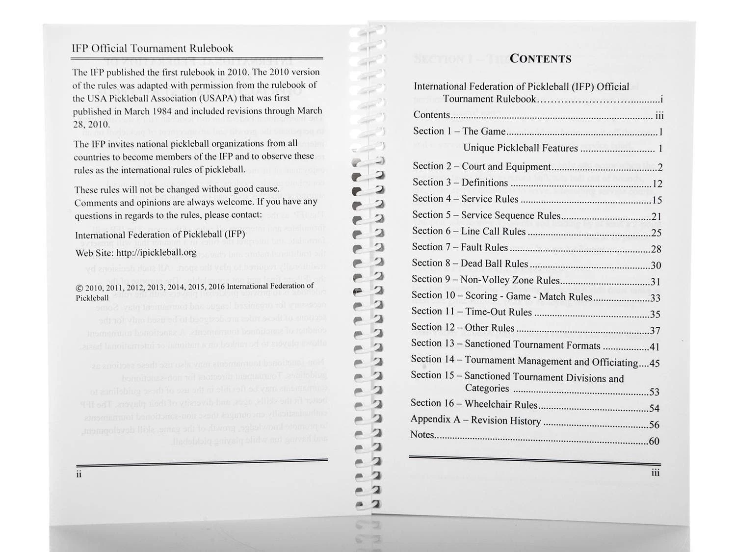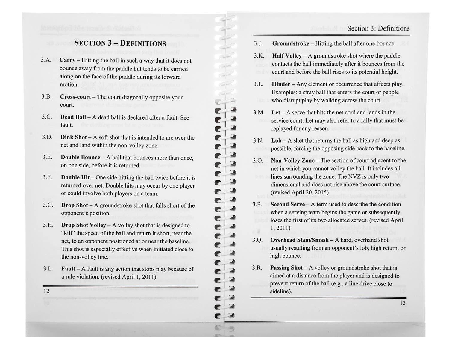 This clear and concise pickleball rulebook breaks down all the rules made by the International Federation of Pickle-ball and the USA Pickle-ball Association, making it a useful reference to use during recreational or tournament play. Rules from every part of the game are explained, including service and fault rules, court dimensions, equipment regulations, non-volley zone rules, tournament conduct, and more. This small and lightweight rulebook is easy to carry and easily fits in a bag. 7”L x 5”W; 2.9 oz. 49 pages.