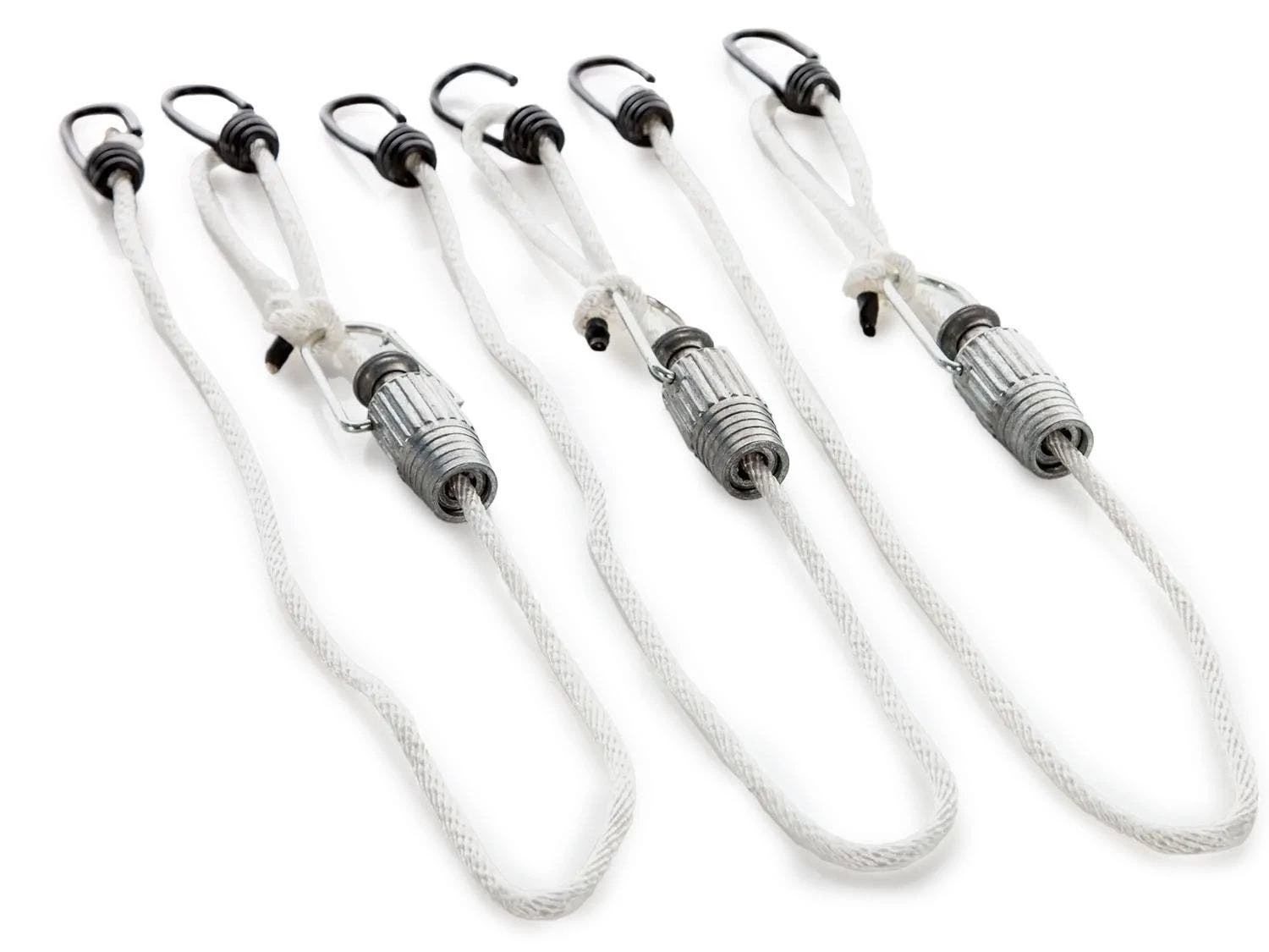 Since a pickleball net is 2” shorter than a tennis net, this handy tool will easily shorten any tennis net (36″) for a pickleball game (34″). Simply hook an end of the net adjuster to the top of a tennis net and secure the other end of the net adjuster to an eye hook on the tennis court. The eye hook will need to be drilled into the pavement of the tennis court before securing the net adjuster. When the net adjuster is in place, tighten or loosen the metal piece in the center to easily raise or lower the net to the desired height for play. The clamp will keep the net at that height for the duration of the game.