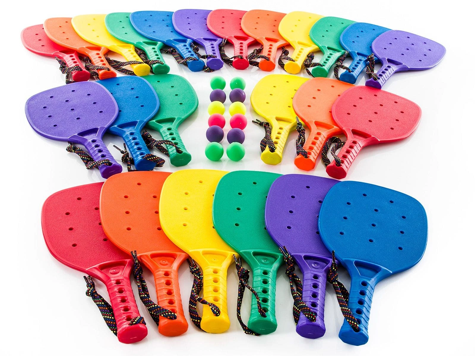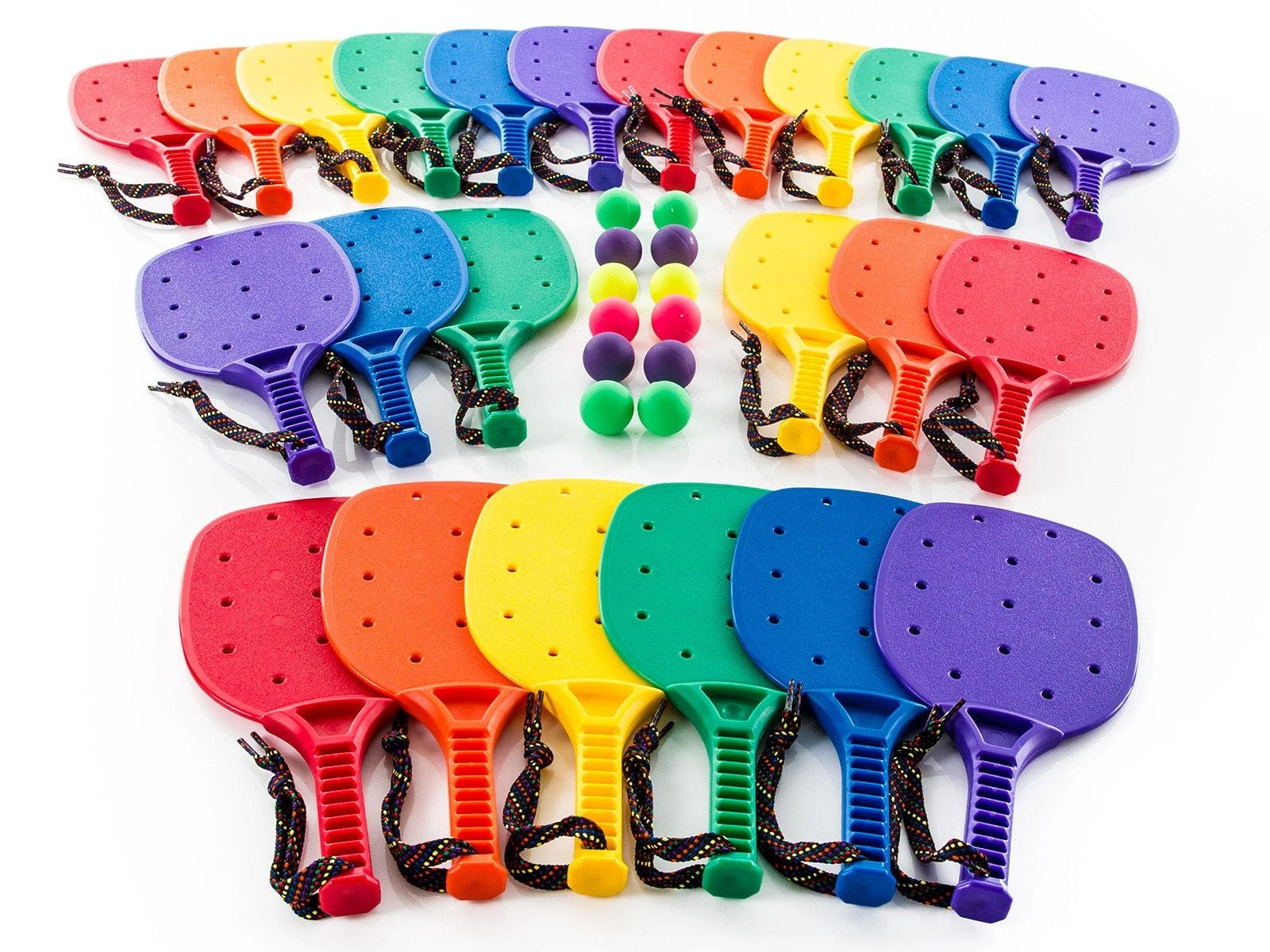 - You can select sets of 6 (1 of each Rainbow color) or 24 (4 of each Rainbow color), giving you plenty of options for the amount of paddles you get for your class. Class sets also include 9 paddle balls of varying colors.