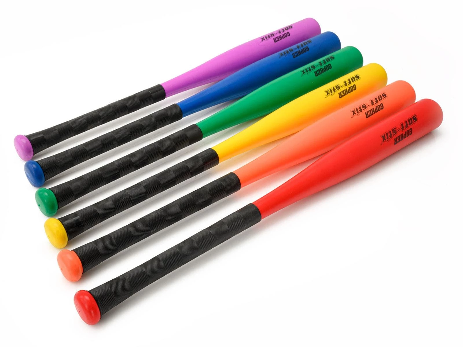Give your class a safe indoor option for practicing hitting skills using these bats. The foam cover absorbs impact and reduces the flight of the ball. A fiberglass core provides realistic weight. It is designed to be used with plastic, foam, and rubber balls. Rainbow colors let teachers divide their classes into multiple groups for hitting drills.