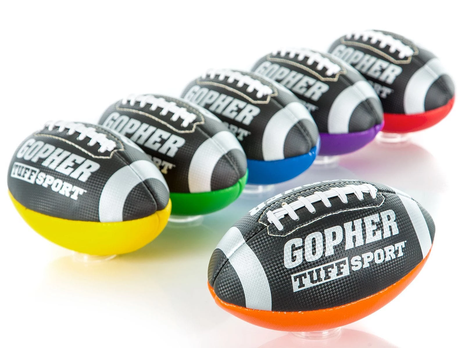 Each ball features a black and gray design with Rainbow paneling. These six colors are perfect for quickly organizing students into various games or drills. Bright and fun, Rainbow colors also encourage more participation from students during activities and pair well with other Rainbow equipment.