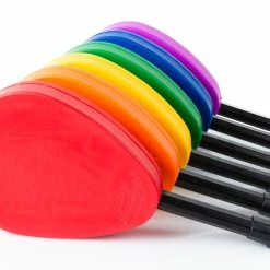 These paddles features a durable, coated-foam head. The paddle handle is made out of ABS plastic with a hex design handle and custom end cap for superior grip and paddle control. These paddles are designed for all hand sizes, making them an ideal addition for your class. 14½”L x 7″W x 2″ thick; 7.4 oz per paddle.
