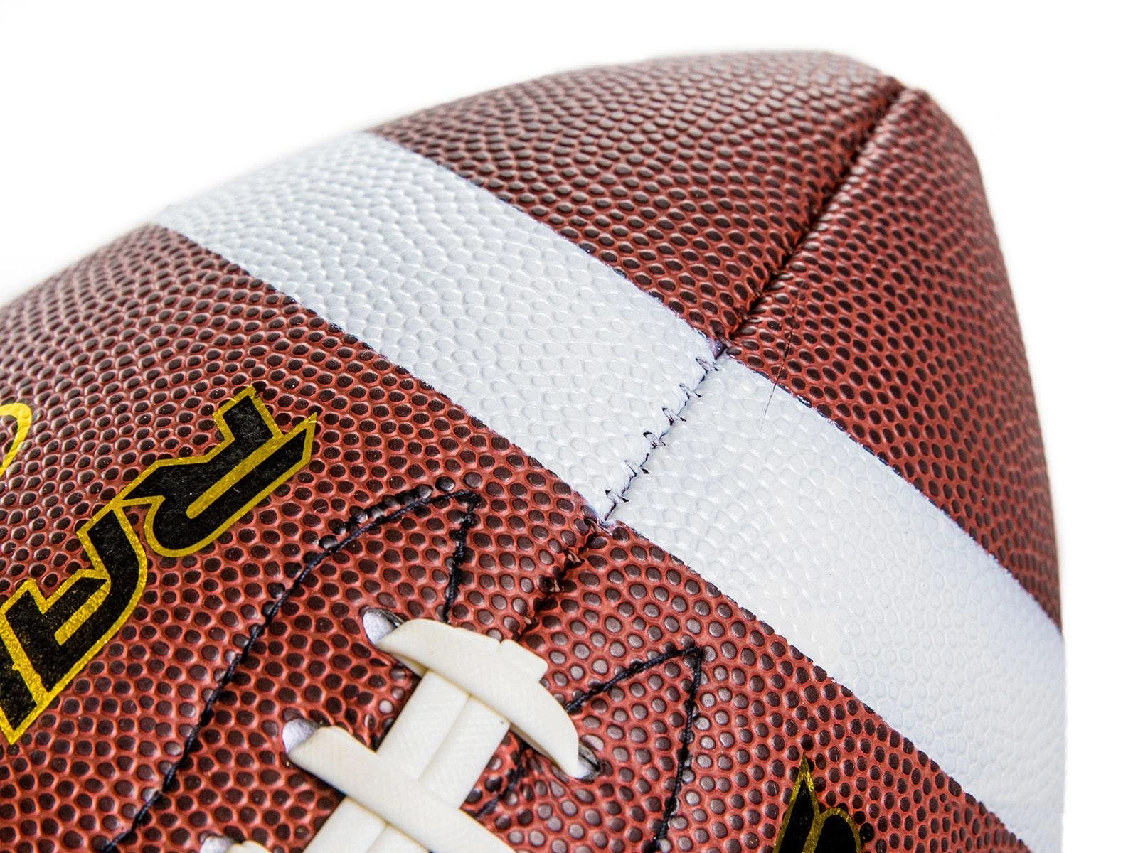 A polyurethane composite leather football cover combined with a soft-touch, neoprene foam backing makes this ball a durable, friendly option for players of all ages.