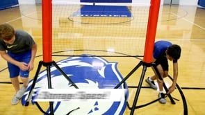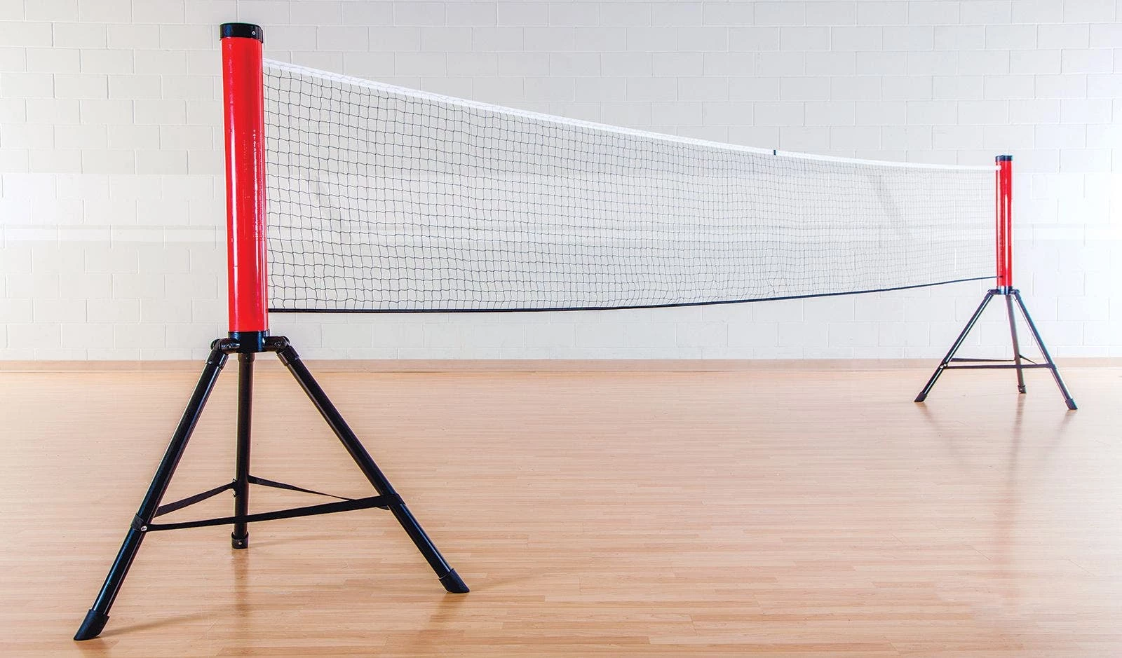 When fully expanded, the net measures an official 20”W x 60”H. A black sewn line indicates where the center of the court should be, making it set-up even easier. The system’s legs are weighted as well, allowing for more stability and a tighter net for a higher degree of authenticity.