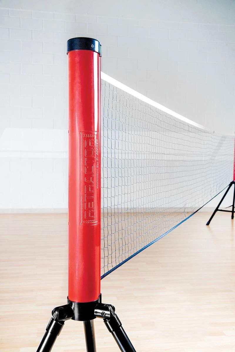 Add a new level of convenience to your badminton unit with this portable net system! The net conveniently expands from and retracts into two spring-loaded housing units. Each stand features fold-down legs, one weighted, to add extra stability and to help keep the net tight. The net expands to regulation size for official badminton play!