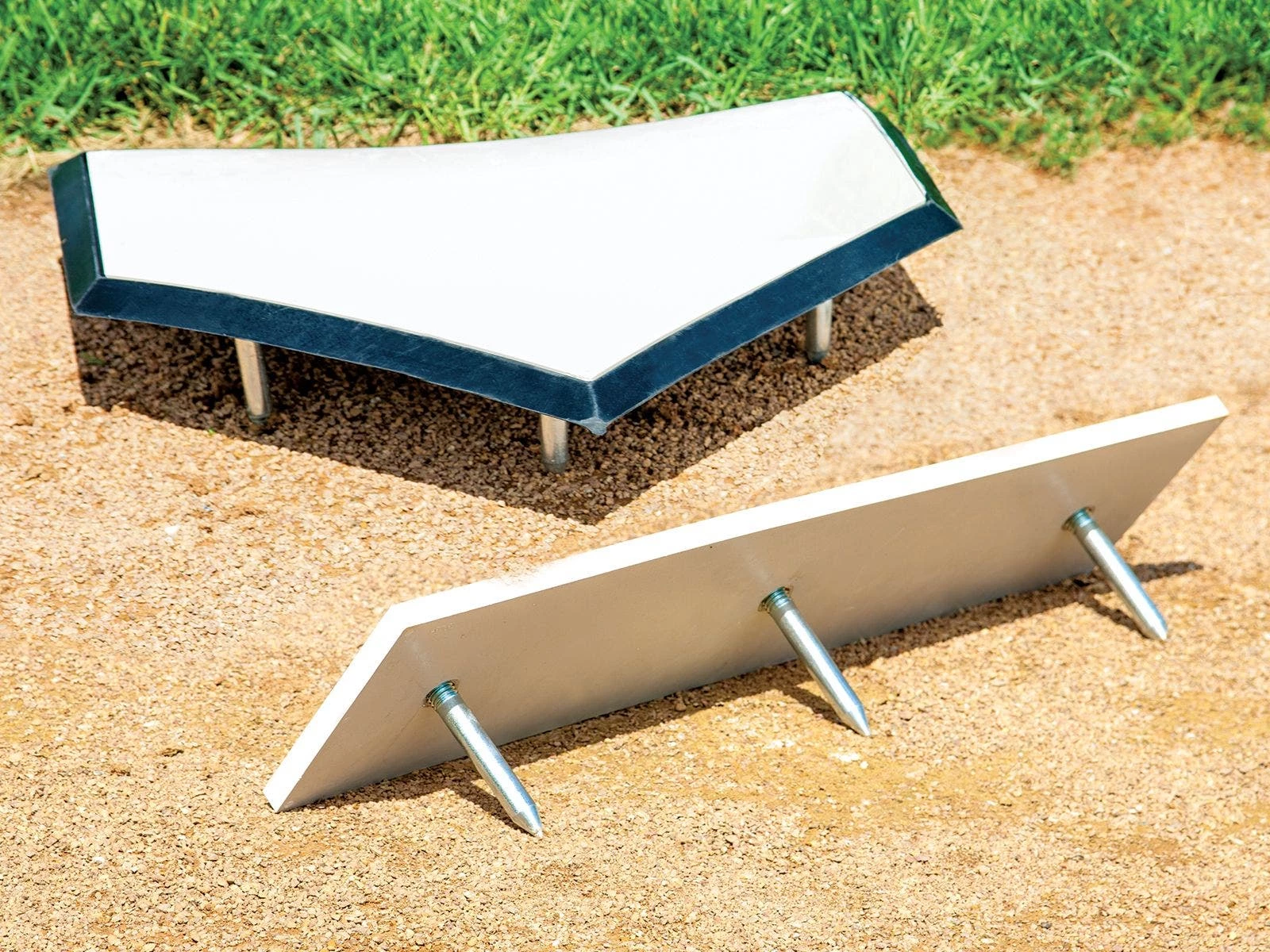 These youth baseball plates are safe and simple to use. Both the plate and mound come with removable spikes that allow for quick and easy installation and removal. Unlike throw-down bases, these stay in place when the runner slides into home plate. Beveled edges on the home plate offer increased safety for runners and position players.