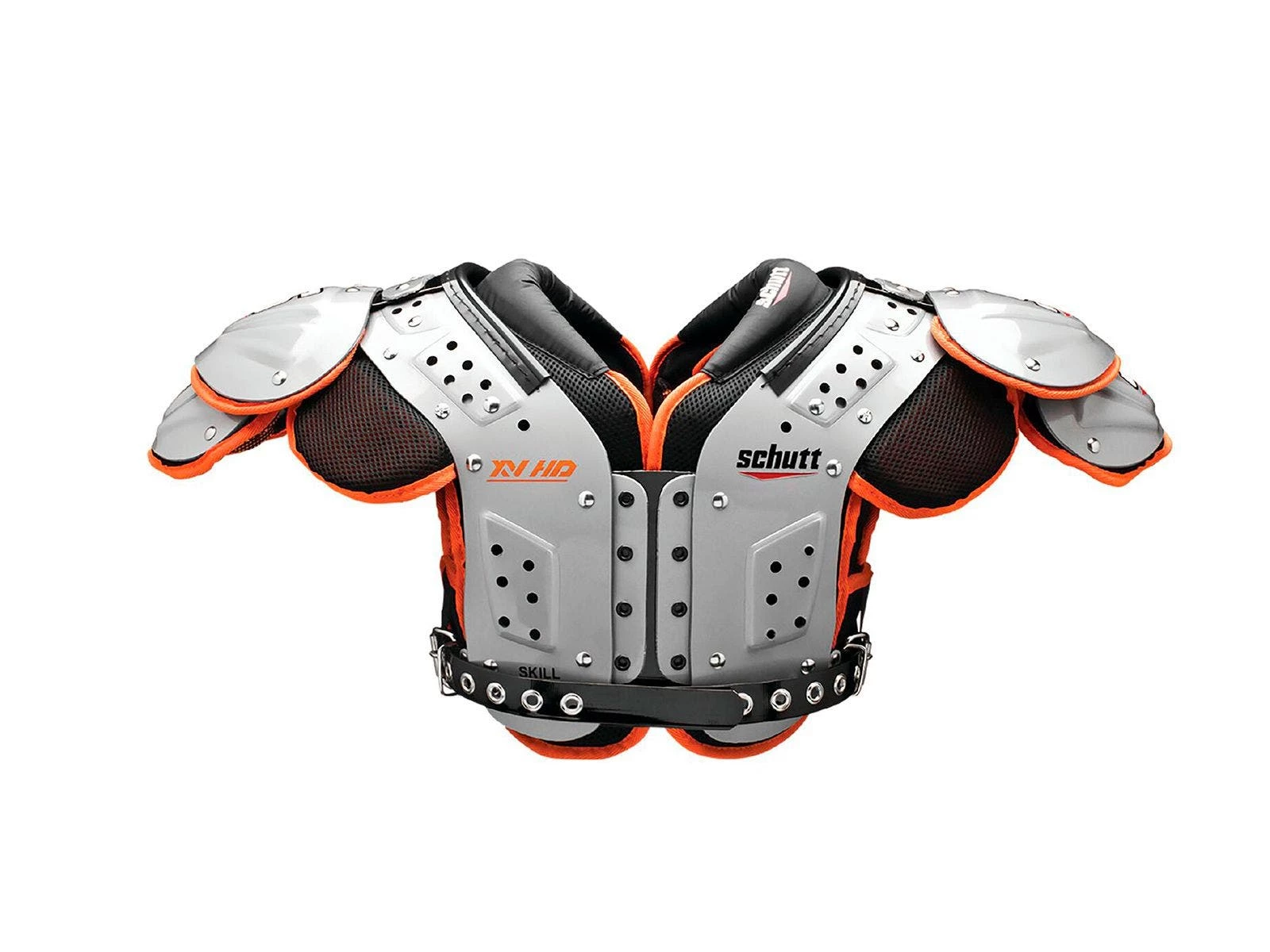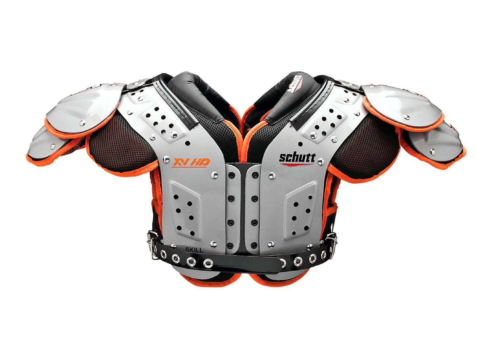 Raised arch corrugations add ventilation, strength, and durability for high-quality performance. Specially-designed EVA foam allows heat and sweat to escape to keep players cool. The Clavicle Channel System provides maximum protection on the shoulders and absorbs impact in the AC joint area. Schutt’s patented BIOTHANE belt provides additional security for a locked in fit.