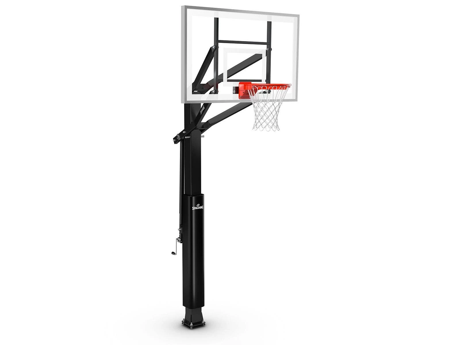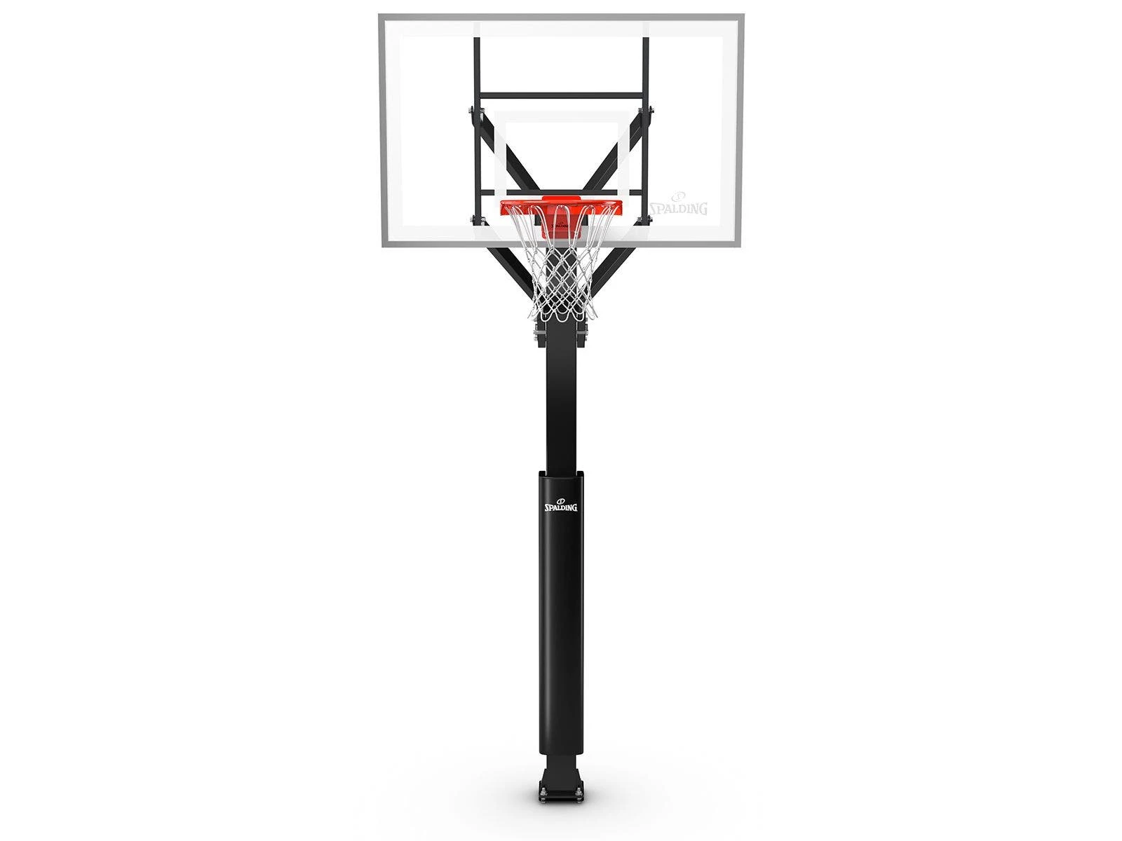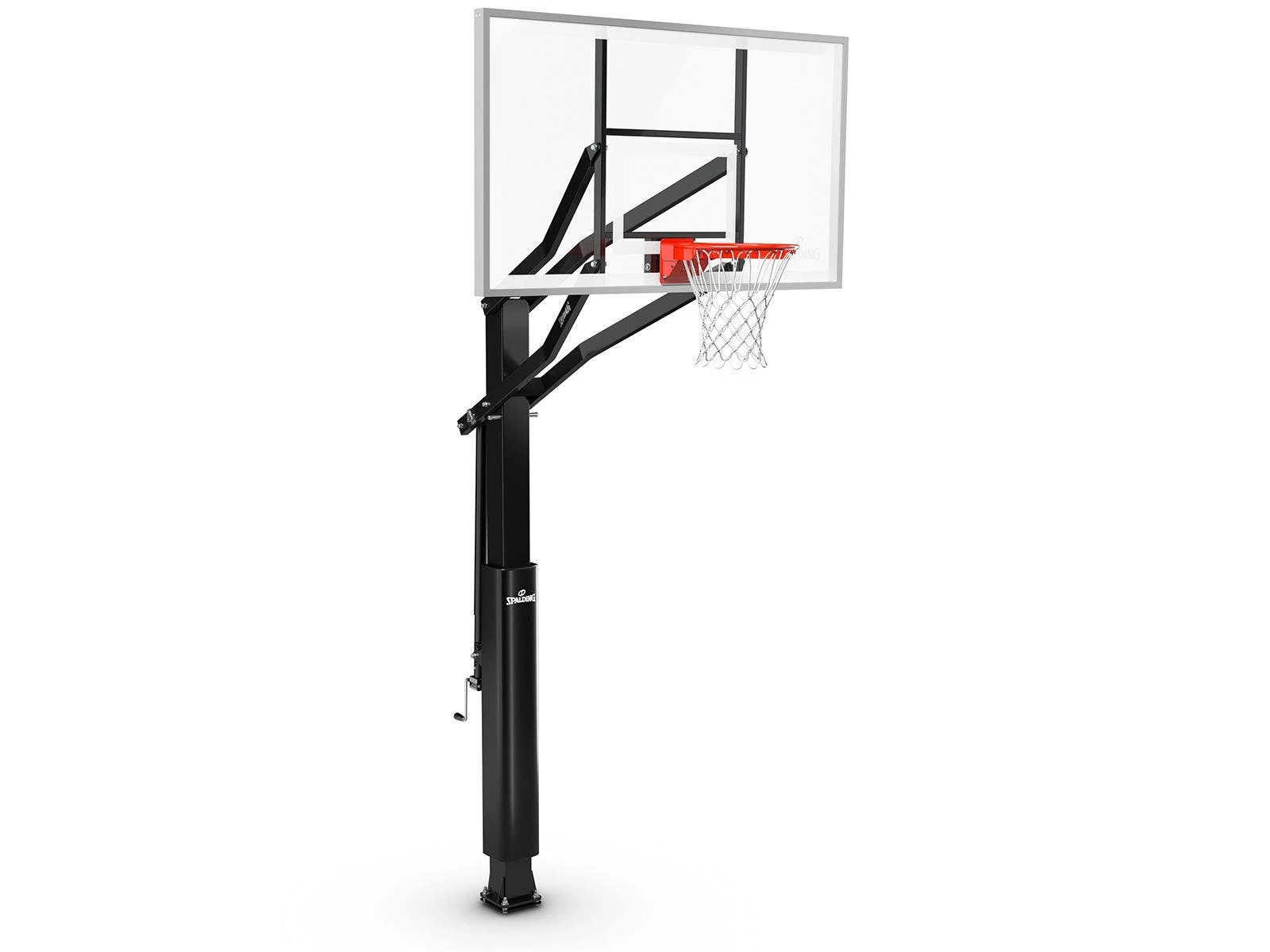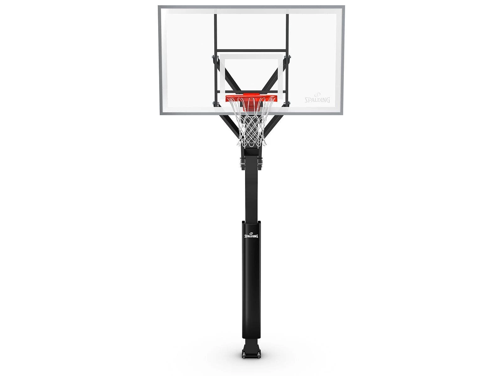 These Spalding in-ground basketball systems feature premium construction for a high-level of play. Basketballs rebound predictably off the tempered glass backboard, which is available in two accommodating sizes. The 4’ offset steel board frame is exceptionally durable and features aluminum trim for enhanced longevity and a professional appearance. It features Spalding’s Flex breakaway rim design, allowing it to withstand intense dunks and harsh conditions.