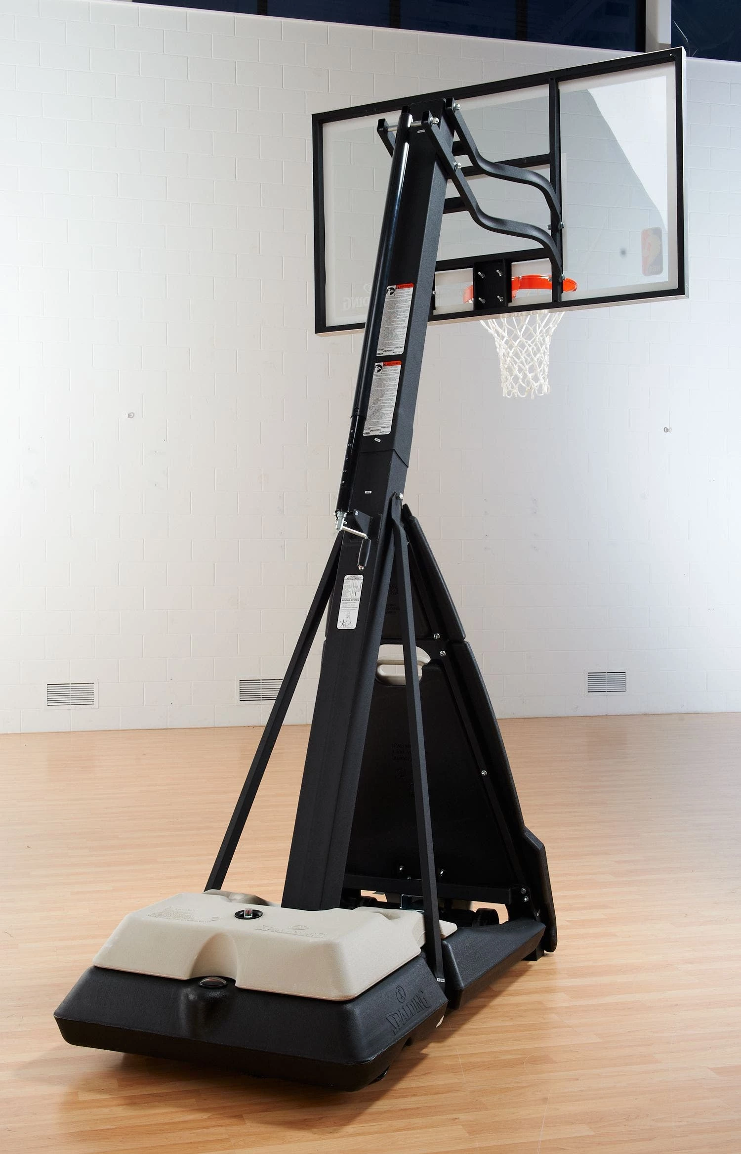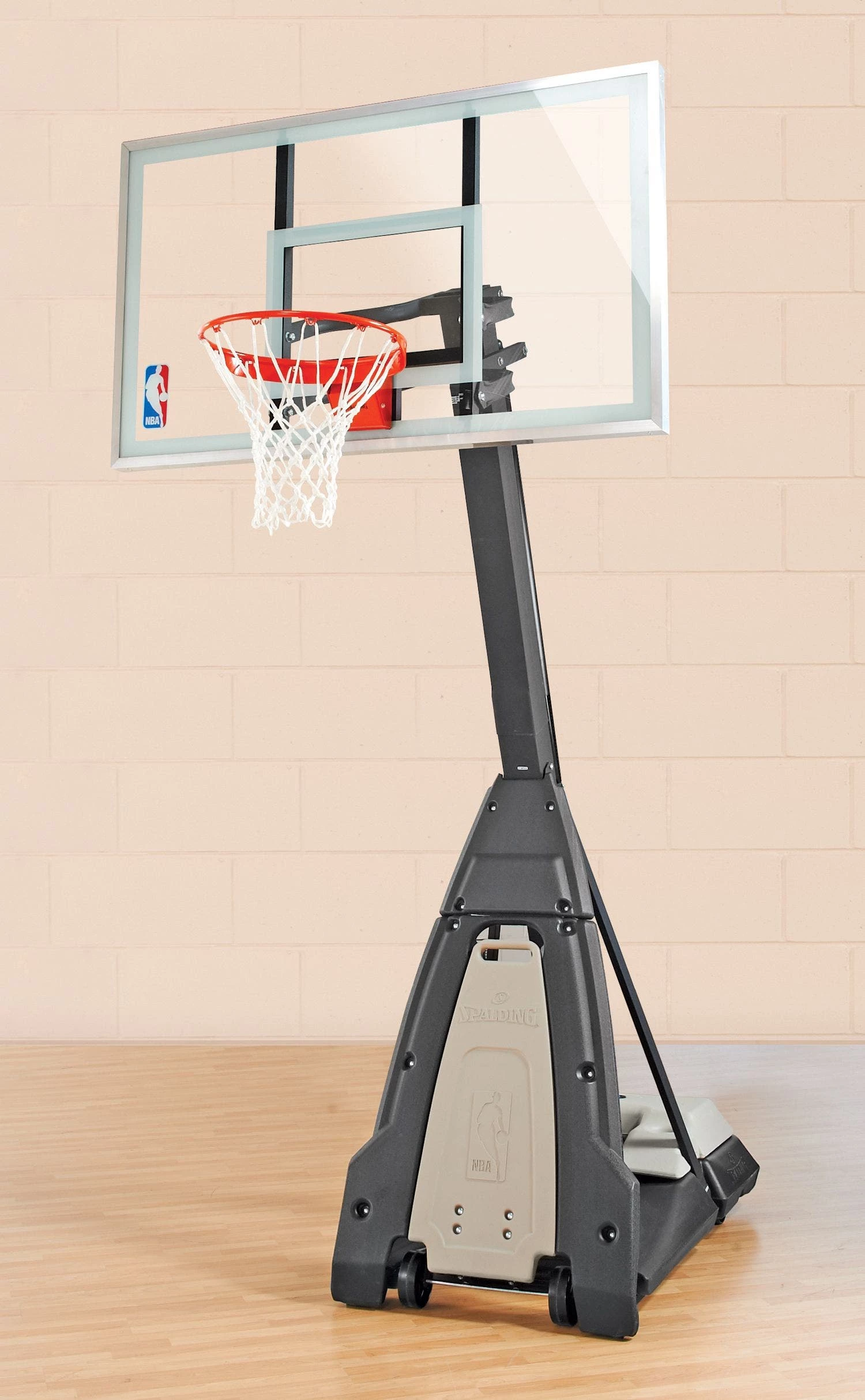 This systems includes a heavy steel frame and the choice of a 54″W or 60”W backboard, making it great for all players. The larger surface is ideal for intermediate players learning bank shots and layups, while also providing great playability on rebounds. Tempered-glass backboard has a steel frame for extra durability. System includes a Pro Image breakaway goal that springs back into place after contact. Wheels under the base allow for easy maneuvering on gym floors and lock into place for stability.
