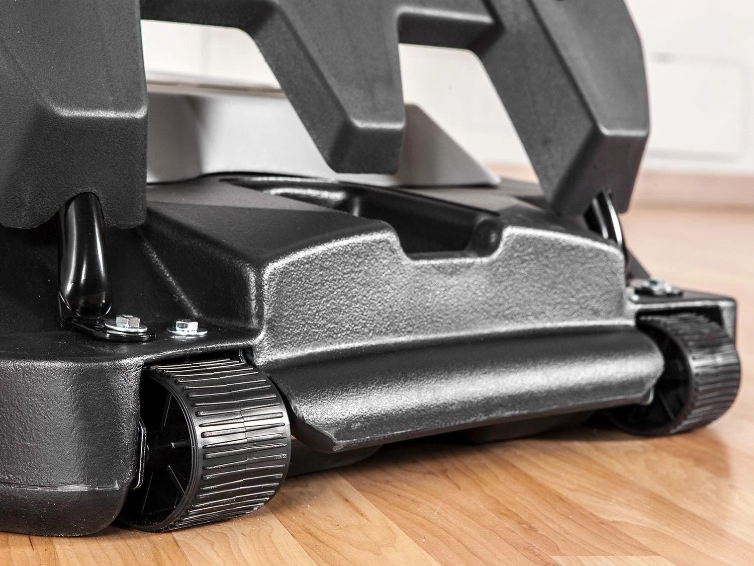 - Two-wheel base holds 19 gallons of water or four 50-lb bags of sand for stability