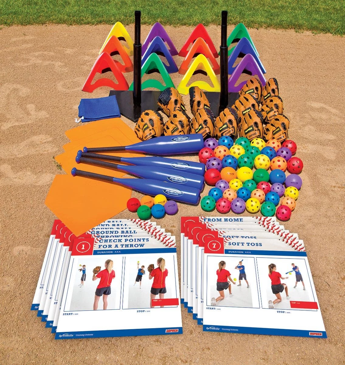 From equipment to instruction, get everything you need to teach the basic skills of baseball and softball in one convenient pack! Quickly set up 12 stations, divide the class into partners or small groups, and let them work their way through each station and skill. Self-directed packs are easy to set up and accommodate all ages and skill levels.