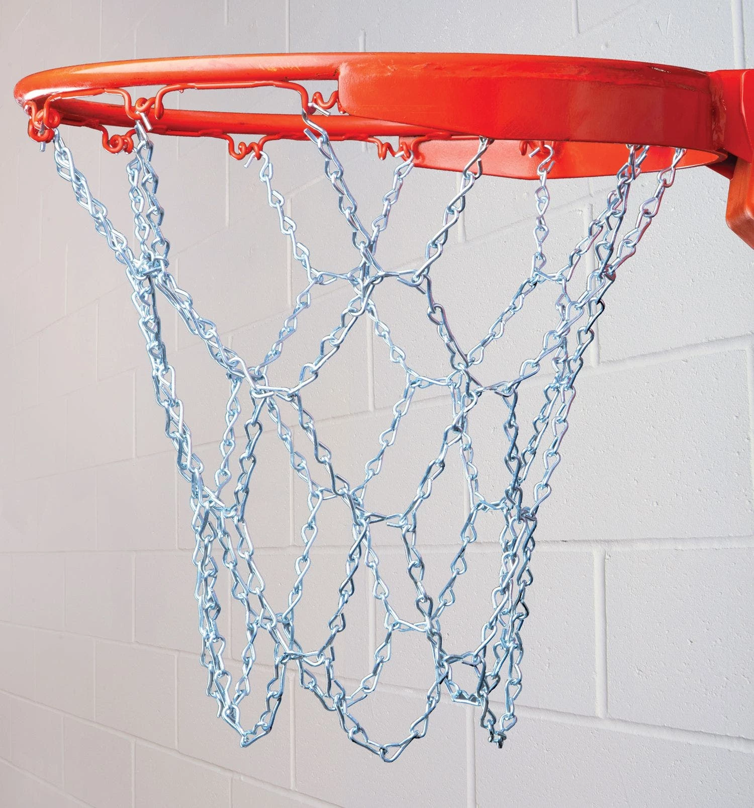 An economical option for outdoor basketball systems, this chain netting is resistant to wind, water, and UV light. Rust-proof, galvanized steel chains stand up to the most intense play. Its heft and staunchness is great for slowing and diverting balls as they drop through the goal.